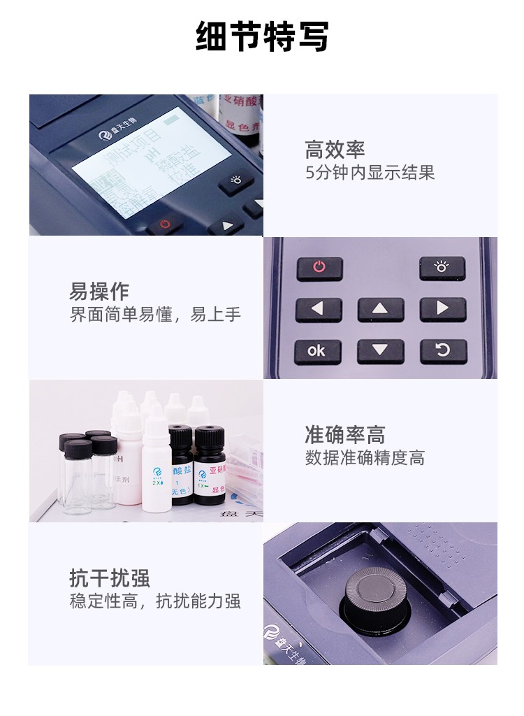 一款適用于工業(yè)污水、水產(chǎn)養(yǎng)殖等領(lǐng)域的檢測儀,配合檢測試劑,可“快速、簡單、準(zhǔn)確、穩(wěn)定”進行測量,擁有精美的外觀造型,簡單的操作界面,準(zhǔn)確的檢測系統(tǒng),幫助用戶獲得精細的數(shù)據(jù),可更準(zhǔn)確、有效的分析水體狀況,提前預(yù)防養(yǎng)殖風(fēng)險,及時避免損失。 數(shù)據(jù)準(zhǔn)確,攜帶方便,檢測快速,操作簡單